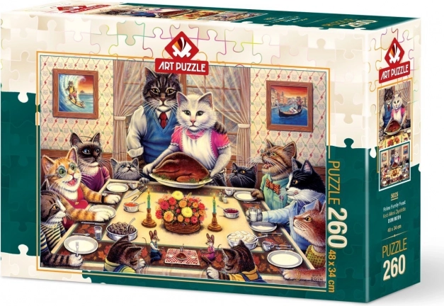 Oplev et kvalitets puslespil for hele familien med motiv af en kattefamilie, som giver timevis af afslapning og underholdning. Takket være præcise udskæringer og robust materiale passer brikkerne perfekt sammen, hvilket gør det nemt også for yngre entusiaster. Når det er samlet, fremkommer et imponerende billede i størrelsen 48 × 34 cm, ideelt til indramning eller udstilling.