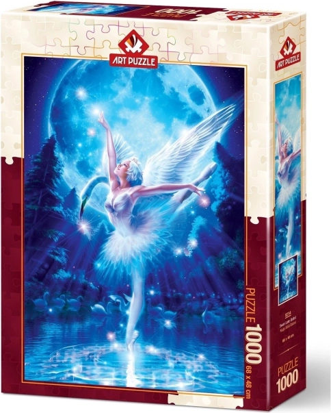 Elegant puslespil med balletmotiv fra Svanesøen fra mærket ART PUZZLE byder på 1000 brikker, høj kvalitet og færdigt mål ca. 48 × 68 cm. Producenten tilbyder desuden service for manglende brik ved fremlæggelse af batchnummer og hvis motivet er tilgængeligt.