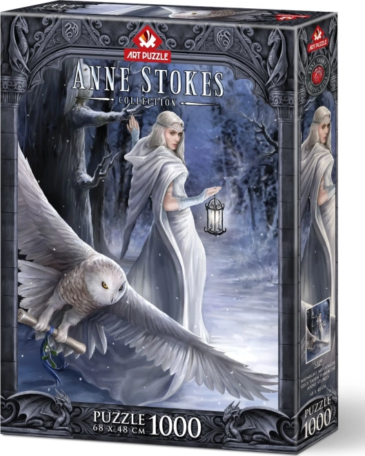 Oplev det dragende motiv Midnatsbud fra den verdenskendte fantasyillustrator ANNE STOKES. Dette kvalitets-puslespil med 1000 brikker vil glæde enhver, der elsker detaljerede illustrationer, mørk æstetik og afslapning med puslespil. Når det er samlet, opstår et imponerende billede på ca. 48 × 68 cm, ideelt til indramning.