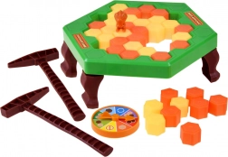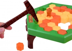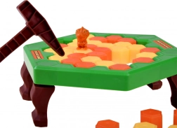 Spillet udvikler strategisk tænkning og finmotorik. I hver runde drejer du skiven, der angiver, hvilke og hvor mange terninger du skal fjerne, uden at dinosauren falder.