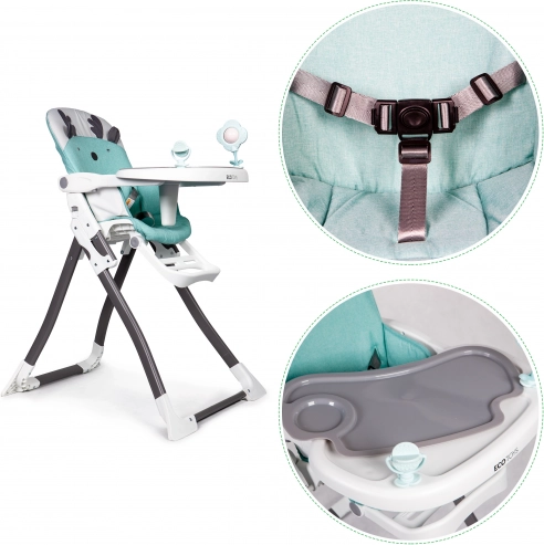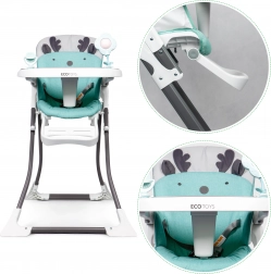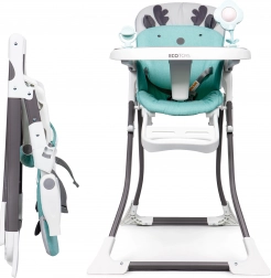 Leder du efter en højstol, der vokser med dit barn og samtidig ikke fylder? ECOTOYS tilbyder en pladsbesparende løsning med hurtig sammenklapning på 1 sekund, så du let kan gemme den væk eller tage den med på farten. Den todelte bakke med forhøjede kanter forhindrer spild og adskiller område til mad og leg. Der medfølger også farverige legetøj, som underholder din lille spiser.