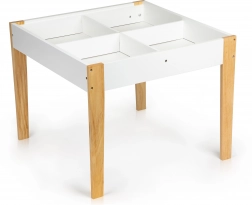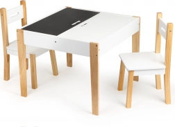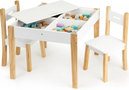 Efter leg kan alt legetøj nemt arrangeres under den aftagelige bordplade. Sættet indeholder to komfortable stole med ben af fyrretræ.