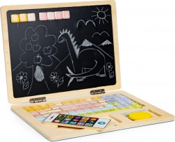 Sættet indeholder 78 magnetiske elementer til at sammensætte ord og ligninger. Kombinationen med kridt tillader skabelse af kunstneriske værker.