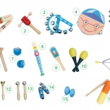 Dette omfattende sæt af musikinstrumenter er et fremragende valg til de første musikalske skridt. Fra tamburin over maracas til fløjte – børnene træner koordination, styrker den auditive perception og har masser af sjov. Trækonstruktionen sikrer styrke og lang holdbarhed, mens de mange lyde understøtter rytmeudvikling og skaberglæde.