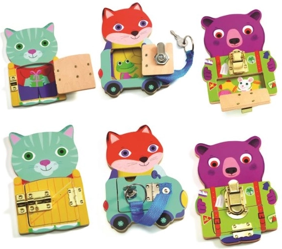 Opdag det sjove sæt fra DJECO, som hjælper børn med at udvikle finmotorik og hverdagsevner. Tre søde dyr med forskellige typer låse vækker nysgerrighed, hånd-øje-koordination og tålmodighed. Den ideelle didaktiske legetøj til førskolebørn fra 3 år. Motorisk udvikling, 3 typer låse og legende læring i ét.