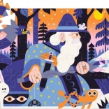 Puslespil med motiv af en tryllekunstner i en smukt formet æske.