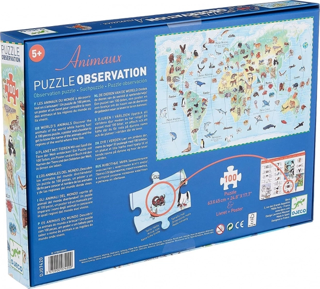 Tag på et eventyrligt verdensomspændende kig med DJECO Observation: dyr fra hele verden. Børn lægger først billedet og kan derefter lede efter og navngive de enkelte dyr, hvilket gør puslespillet både sjovt og lærerigt. Den vedlagte brochure på 10 sprog (ikke på tjekkisk/slovakisk) er et glimrende redskab til sprogindlæring og selvstændig informationssøgning.