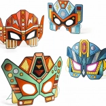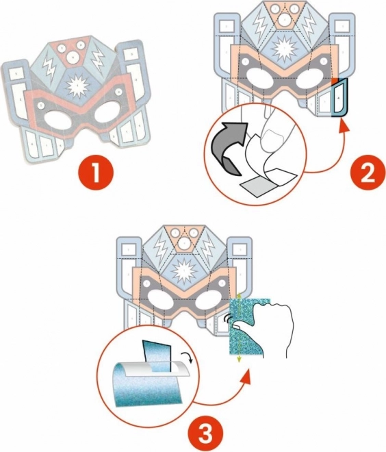 Dette kreative sæt gør det let og sjovt for børn at færdiggøre 4 superrobot-masker. Takket være de nummererede klæbefelter fjerner du blot dækkepapiret og presser metalfolierne på – materialet fæstner som ved magi, og maskerne glitrer flot.