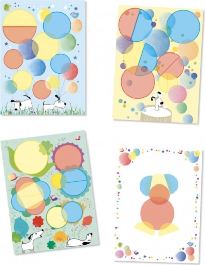 Smukt farverigt sæt til de mindste børn, som ved hjælp af forskellige farvet cirkler kan skabe smukke billeder fulde af kreativitet og fantasi.