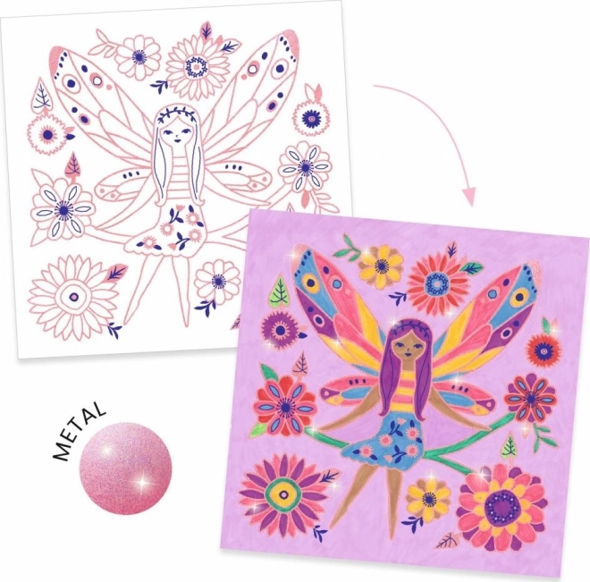 Oplev den magiske verden af malebøger med Djeco glitrende malebøger Feer. Disse malebøger er specielt designet til nem farvelægning, takket være glitrende forhøjede kanter, der guider dig og sikrer, at du bliver i linjerne. Praktisk skabelon giver en farverig version af hver illustration, hvilket gør det lettere at få inspiration og kreativitet.
