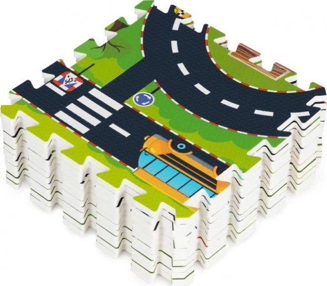 Sættet består af 12 farverige dele med forbindende “tænder”, som gør det muligt at samle måtten i vilkårlig form og størrelse. Materialet er certificeret (CE, EN71, ASTM), sundhedsmæssigt ufarligt og let at rengøre. Perfekt til børneværelset, legerummet og på farten som en transportabel legeflade.