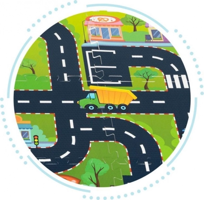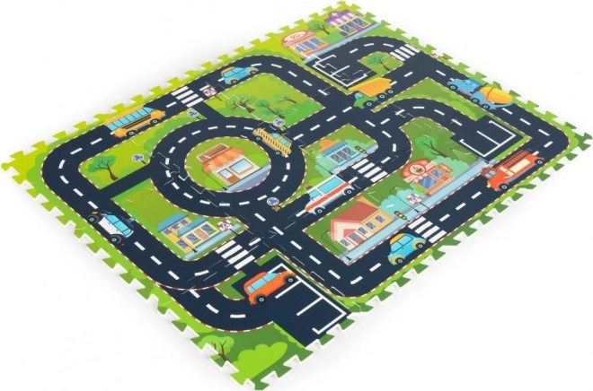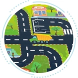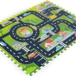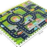 Det detaljerede print af gader, kryds og bygninger stimulerer fantasien og udvikler børns motorik og rumlige forståelse.