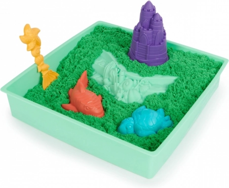 Indeholder 454 g grønt sand, forme til havdyr og borg samt en skovl til at grave, øse og hælde. Sandet er lavet af naturligt sand og er et godt alternativ til modellervoks – det understøtter finmotorik, kreativitet og selvstændig leg.