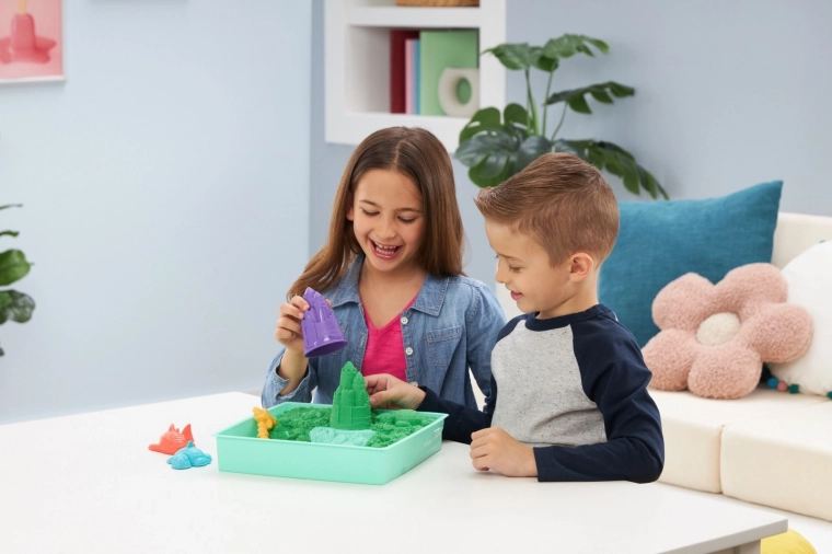 Oplev magien ved sanseleg med den originale KINETIC SAND i et praktisk bord-sæt med bakke. Den tørrer ikke ud, er nem at forme og klistrer ikke til hænderne, så børn kan bygge borge, dyr og deres egne verdener igen og igen. Indeholder 454 g grønt sand, forme og en skovl – ideelt til kreativ leg uden rod, både inde og ude.