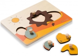 Hauck Lion træpuslespil er designet til en sikker og glædesfyldt første pusleoplevelse. De farverige brikker med dyremotiver og en sol har praktiske knopper, som gør det nemt for børn at håndtere dem, styrker grebet og lærer dem at placere formerne korrekt.