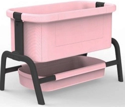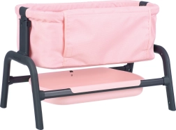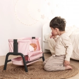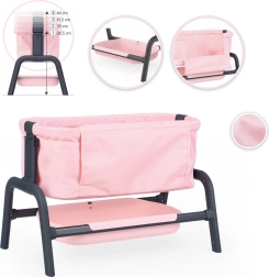 Elegant lyserød dukkevugge fra SMOBY i Maxi-Cosi Quinny-design, ideel til dukker op til 38 cm. Den tilbyder 4 niveauer af højdejustering, stabil konstruktion på 4 ben og praktisk opbevaringsplads under sengen. Takket være afrundede kanter og holdbare, let aftørrlige materialer er den perfekt til daglig leg og pleje af “babyen”.