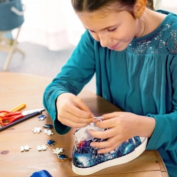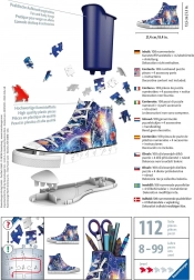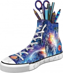 108 solide brikker med kosmisk grafik samles til en attraktiv sneakerform. En fantastisk udfordring for små byggere og begyndere i 3D-puslespil.