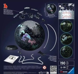 Oplev universets magi når som helst på dagen med den lysende puslespilsglobus over stjernehimlen. Når de 180 præcise brikker er samlet, toner stjernebilleder og stjernetegn frem, som takket være fosforescerende materiale lyser i mørket. Med EasyClick-teknologien passer brikkerne nøjagtigt sammen og holder uden lim. Globussen fungerer desuden som et diskret dekorativt lyselement til børneværelset eller kontoret.