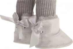 Udvid din dukkes garderobe med elegante sølvfarvede støvler, der passer perfekt til dukker på 40–52 cm. Kvalitetsforarbejdning og håndlavet produktion sikrer et flot udseende og nem påtagning.
