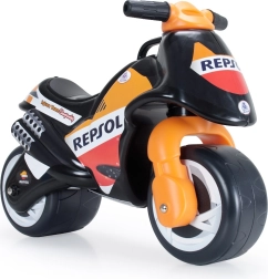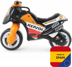 Let og stabil løbecykel i stil med en racermotorcykel med officiel REPSOL-licens, der glæder små kørere fra 18 måneder. Brede hjul for bedre stabilitet, ergonomisk sæde og drejeligt forhjul for nem styring sikrer en komfortabel og sikker kørsel både hjemme og ude. Holdbare IML-klistermærker og robust konstruktion garanterer lang levetid, og det praktiske bærehåndtag gør den nem at transportere.