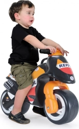 En stilfuld løbecykel til børn i sort-orange REPSOL-design, der støtter udviklingen af balance, koordination og selvtillid ved de første køreture. Takket være de brede hjul og det lavt placerede sæde er kørslen stabil og komfortabel på forskellige underlag.