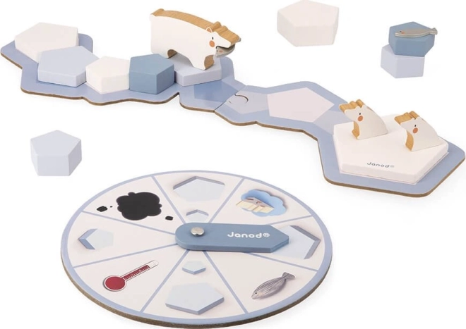 Janod Bordspil Arctic Party er ideelt for alle, der elsker strategiske spil med et miljøtema. Spillerne skal tage sig af isbjørnen og hjælpe den med at levere fisk til dens unger. Målet er at undgå alle forhindringer som smeltende isbjerge eller oliepletter.