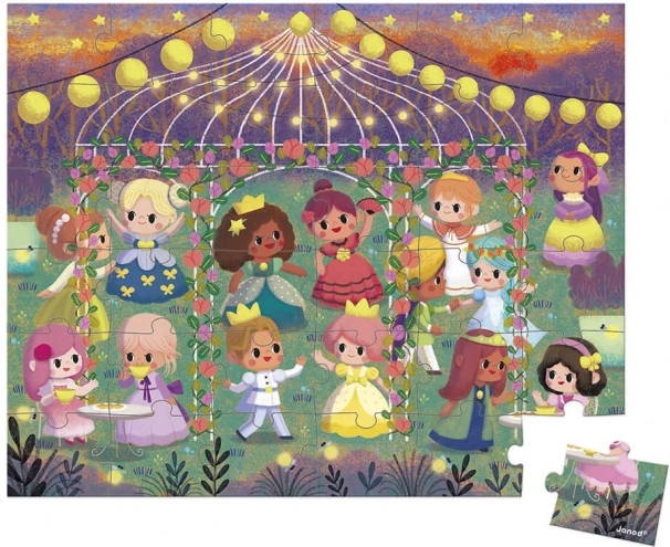 Fortryllende puslespil Prinsesser med 36 brikker i kuffert. Ideelt hjemme og på farten. Mål 50x40 cm.