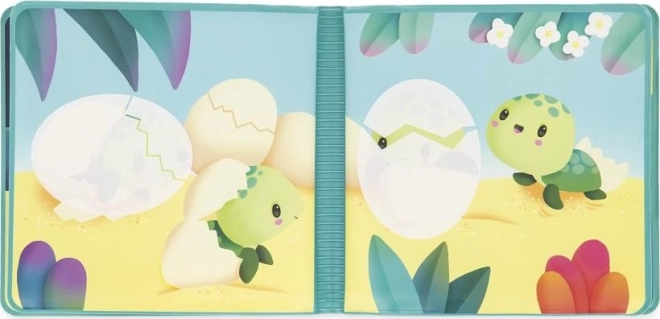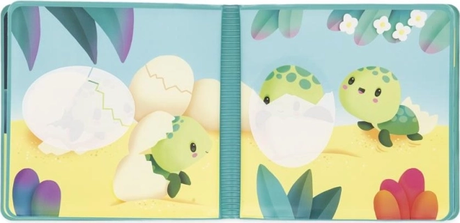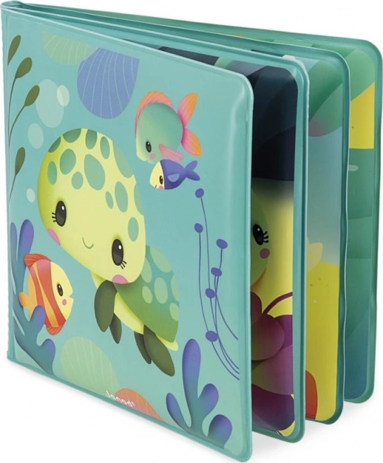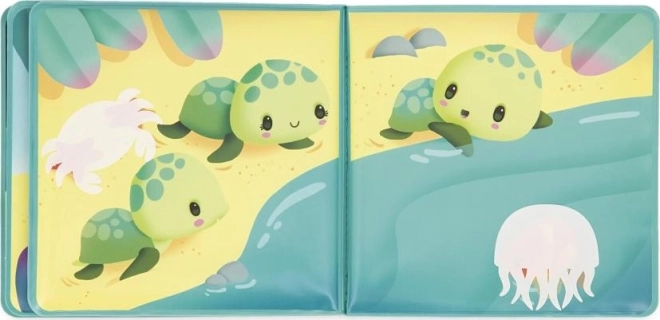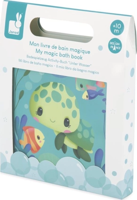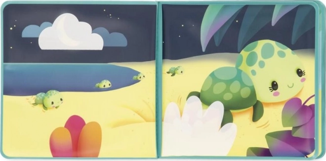 Giv dit barn sjov i badet med Janod blød badebog om skildpadder. Denne originale bog byder på et otte siders eventyr, der fører børn ind i en magisk havverden. Se de magiske dyr dukke frem, når bogen kommer under vand, og gemme sig igen, når den tørrer.