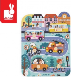 Janod - Træpuslespil I byen, 6 brikker, 18 måneder +