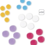 Sættet JANOD My Arts & Crafts: Pomponer er en perfekt introduktion til den kreative verden for små børn. Det tilbyder fire billeder, som børnene kan dekorere med 150 pomponer i to størrelser og fem forskellige farver. Alt dette suppleres af fire billedstativer, der nemt kan laves ved hjælp af æsken.