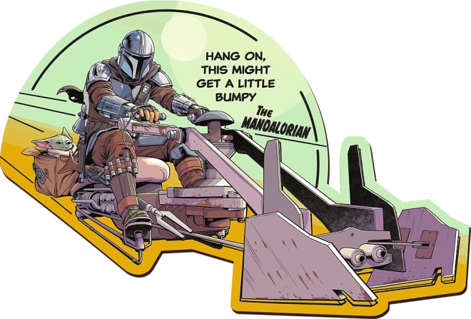 Træpuslespil Star Wars: The Mandalorian med 160 brikker og 10 figurer. Uregelmæssige former, dekor på bagsiden, kvalitets- og miljøvenlig udførelse. Fra 12 år.