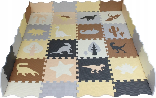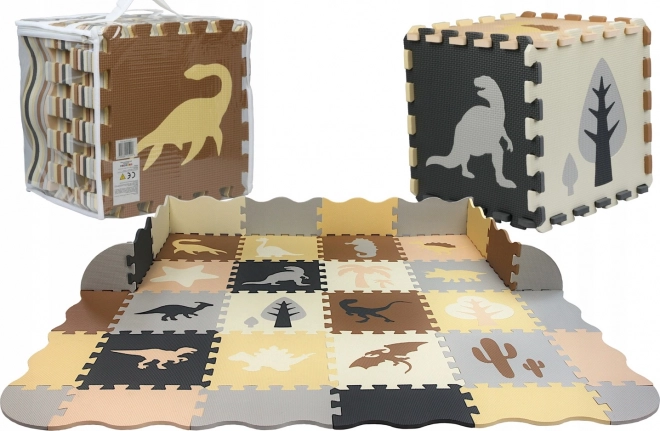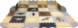 Denne EVA-skum-måtte med dinosaurer forvandler gulvet til en sikker og sjov legeplads. Takket være det ekstra bløde materiale og en tykkelse på 0,9 cm beskytter den mod kulde, dæmper fald og støj og sikrer komfort under leg. De neutrale farver passer perfekt ind i moderne interiører.