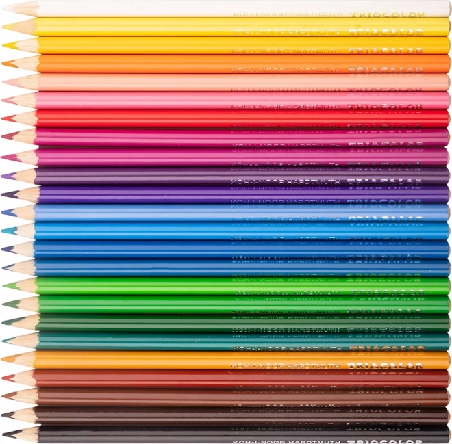 De populære trekantede farveblyanter KOH-I-NOOR TRIOCOLOR i et sæt med 12 stykker vil glæde både børn og voksne. De tilbyder holdbar, brudsikker stift, rigt farvespektrum og behageligt greb takket være den ergonomiske trekantede form.