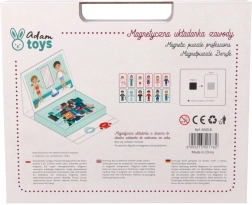 Opdag et sjovt og lærerigt spil for børn fra 3 år: et magnetisk klæd-på-puslespil med erhverv, som udvikler finmotorik, logisk tænkning og hånd–øje-koordination. Takket være den sammenklappelige tavle med hank er den ideel derhjemme og på rejser – børn kan skabe figurer som astronaut, brandmand, balletdanser, læge eller pilot af farverige magnetiske dele.