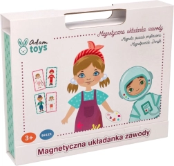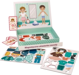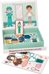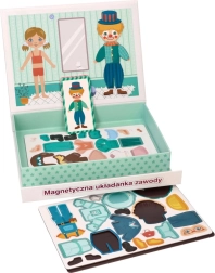 Dette magnetiske puslespil i kuffert introducerer børn til en verden af forskellige erhverv i form af en populær “klæd-på”-leg. Børn samler figurer og deres uniformer på den magnetiske tavle, inspirerer sig af kortene eller laver deres egne kombinationer. Legen understøtter naturligt fantasi, tålmodighed og læring gennem leg.