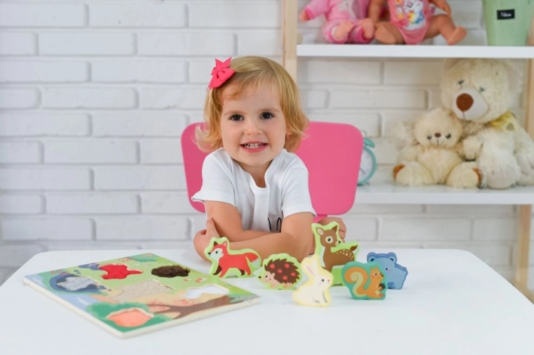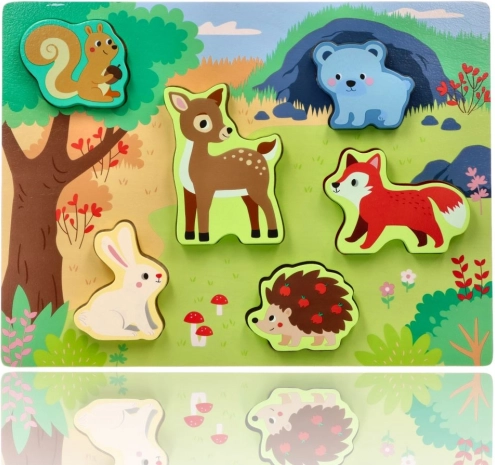 Takket være den holdbare lakerede overflade og de glatte kanter er legetøjet velegnet til daglig leg. Det understøtter hånd–øje-koordination, tålmodighed og koncentration, mens børnene naturligt lærer skovens dyr at kende.