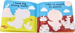 Bogen har et kompakt format på 15 × 15 cm, 6 lette sider at bladre i og er lavet af blød, aftørbar plast for sikker leg i badet. Perfekt som gave til små dinosaurelskere og til at støtte finmotorik og visuel perception.