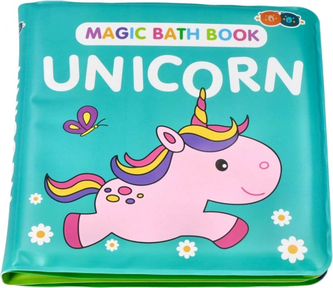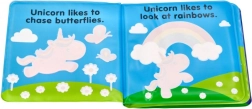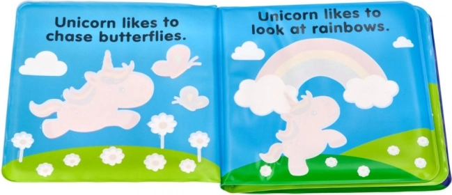 Den vandtætte foldebog med UNICORN-motiv tryllebinder børn med farveskiftet ved kontakt med vand. En sjov måde at motivere til bad og udforskning.