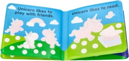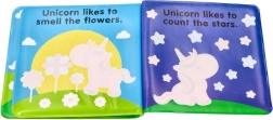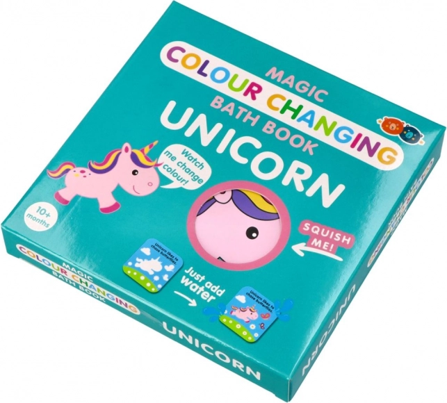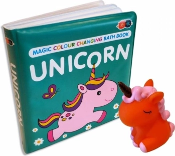 Gør badet sjovere med et sødt sæt til de mindste: en vandtæt foldebog med UNICORN-motiv, der skifter farve, når den kommer i kontakt med vand, samt en blød gummifigur af en enhjørning til leg i badekarret. Ideel til børn fra 18 måneder, udvikler sanser, finmotorik og støtter en positiv relation til badet.