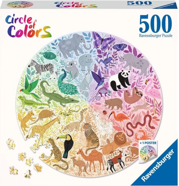 RAVENSBURGER Runde puslespil Farvecirkel: Dyr 500 brikker