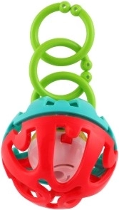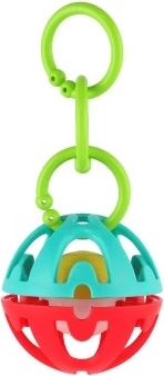Den farverige kugle fanger barnets opmærksomhed ved første øjekast. Legetøj, der passer godt i små børnehænder. De to halvdele af kuglen kan drejes, så bolden rasler og vækker barnets nysgerrighed. Legetøjet kan nemt hænges på barnevognen.