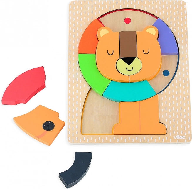 Dette kvalitetsindsætningspuslespil i træ med løvemotiv giver børnene læring gennem leg. Hver plads på grundpladen er farveopdelt, hvilket hjælper med bedre orientering og succesfuld samling. Takket være de faste og glatte brikker er puslespillet ideelt til små børn fra 2 år.