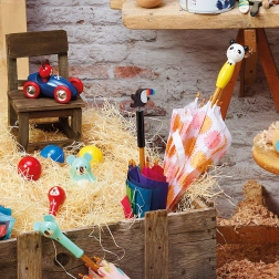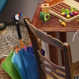 Det sofistikerede ANDY WESTFACE-design forener enkle former og klare farver, der stimulerer fantasien og det gode humør. Takket være det komfortable træhåndtag ligger paraplyen godt i selv mindre børnehænder.