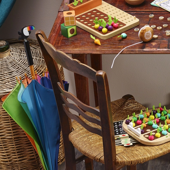 Denne farverige børneparaply forvandler enhver byge til et gladt eventyr. Regnbuefelterne og det ikoniske tukanhåndtag giver et legende udtryk, mens den robuste konstruktion beskytter mod både regn og vind. Ideel til børn fra 3 år.
