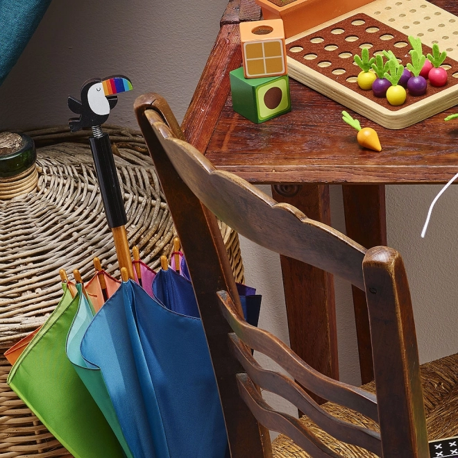 Det originale håndtag formet som en tukan giver paraplyen personlighed og motiverer børn til at bære den med glæde.