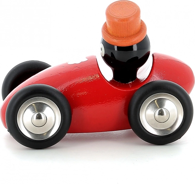 Oplev charmen ved klassisk trælegetøj med et moderne twist. Racerbilen med pingvinen René er fremstillet i Frankrig i Jura-værkstedet og lakeret med en unik neddypningsteknologi. Den glatte overflade, mættede farver og robuste konstruktion gør den til en favorit til de første køreture og fantasifulde løb.