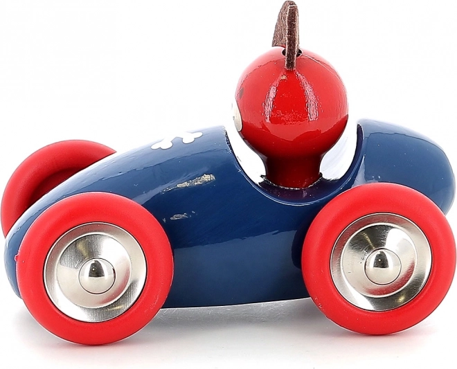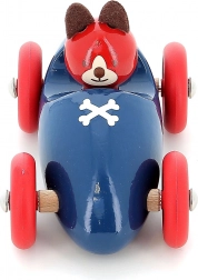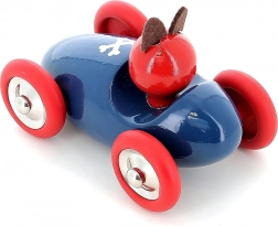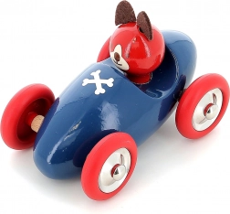 Racerbilen med hunden Lucien i ikonisk blå-rød farvekombination er lavet af kvalitets træ og lakeret med en unik dyppe-teknologi, som sikrer en glat overflade, kraftige farver og lang holdbarhed. Børn vil elske den nemme rullen, de behagelige former og den venlige fører.