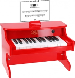 Det stilfulde elektroniske VILAC-klaver i rød er ideelt til små, begyndende musikere. Takket være det solide træhus, 18 tangenter og den medfølgende nodebog lærer børn nemt grundlæggende melodier og rytmer. Klaveret er ikke et professionelt instrument, men tilbyder smukke lyde til legende og motiverende spil.