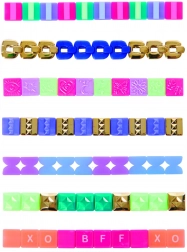 Guldkæder, emojis, bogstaver, facetslebne og stribede perler samt gennemsigtige elementer understøtter kreativitet og personlig stil.
