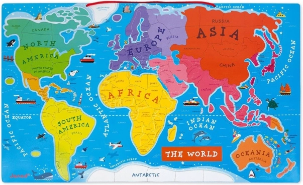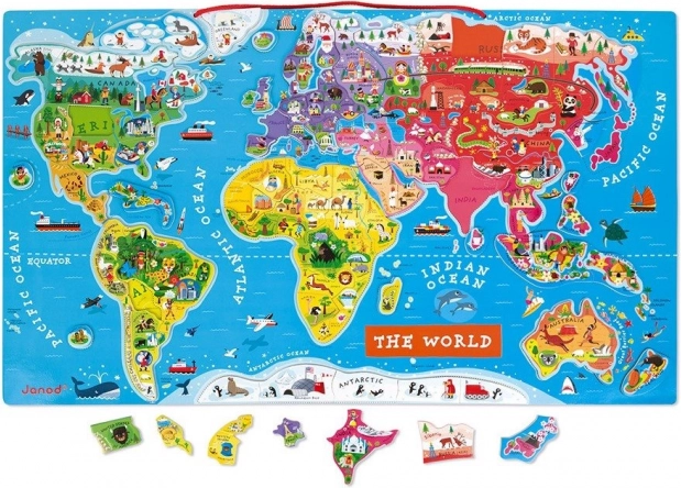 Magnetisk verdenskort er et fremragende læringsredskab for børn, som hjælper dem med at lære geografi på en legende måde. Det indeholder 92 brikker, der repræsenterer forskellige regioner og lande.